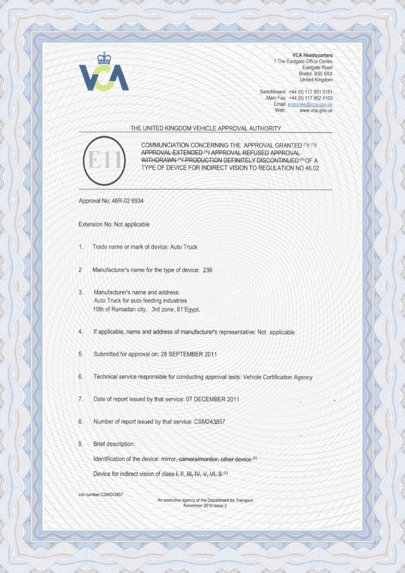VCA Certificate 237